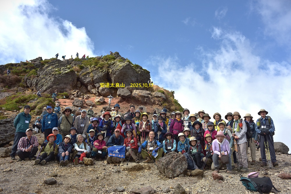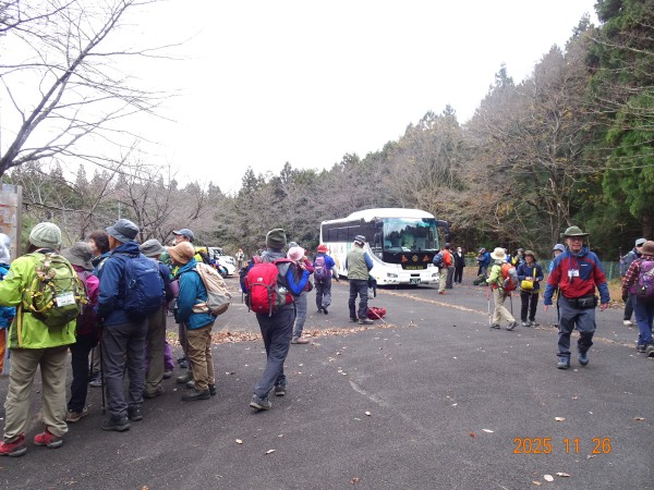 今日の集合写真は山頂付近に適当な場所が無かったためバスの前で撮りました。