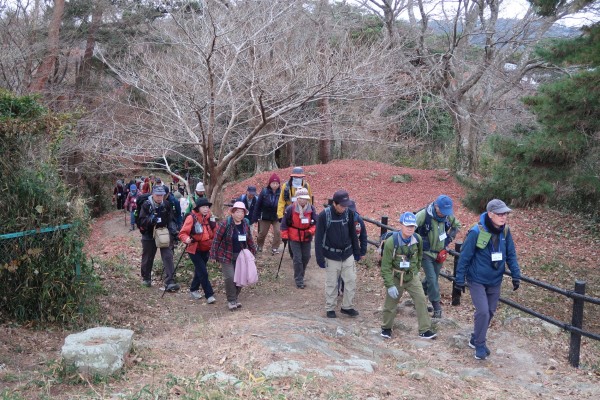 日程変更をして、また二転三転する天気予報に悩まされた鎌倉山トレッキングも参加者55名と