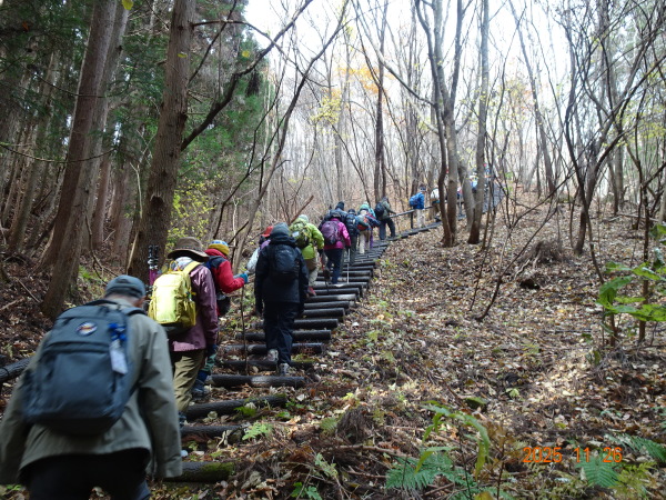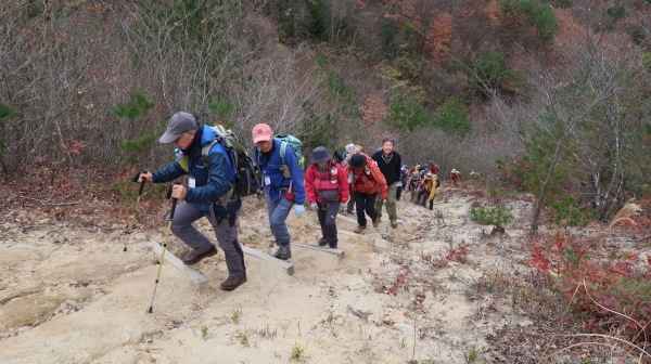「山ぽ・くらぶ」の面々も頑張って階段を登りました。 |
