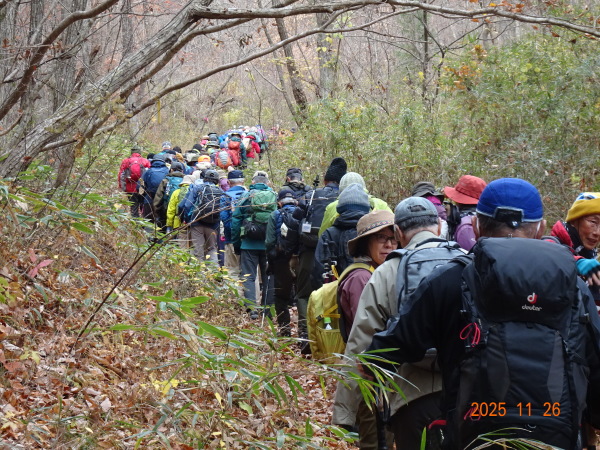 日程変更にも拘わらず52名を得ることが出来ました。天候は晴れ気温17℃近くあり絶好の登山日和