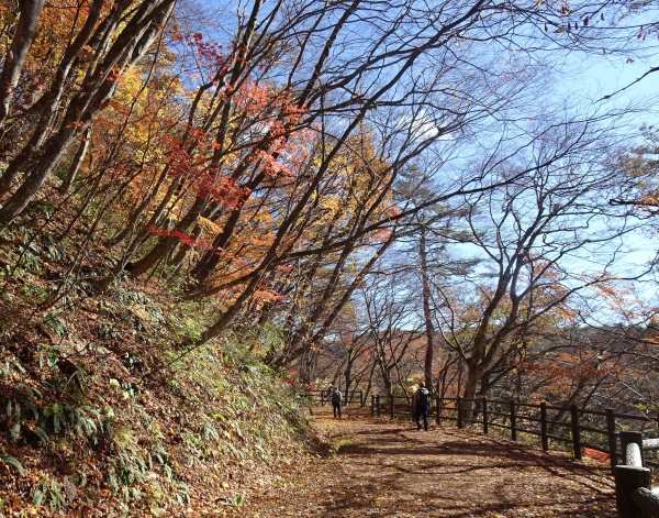 約3時間の山歩きを終えると上山温泉の月岡公園に着き、シンボルの上山城を眺めゴールと