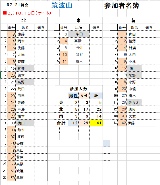下記参加者名簿で間違いがある場合は 事務局菅井(090-4637-4950)にご連絡お願いします。。